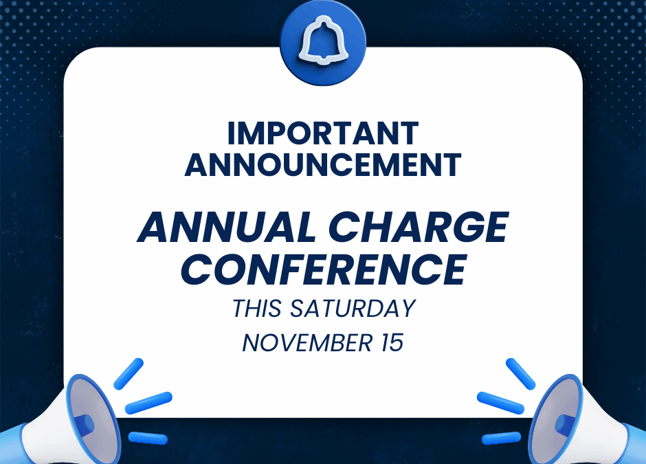The Summit Church Annual Charge Conference will be in person in our Sanctuary on Saturday, November 15 from 2 to 3 p.m. Our District Pastor, Rev. Lou Ward, will be with us to lead the meeting. The meeting is a chance to hear an update on the church’s Mission and Strategic Vision, celebrate the past year, and look forward to the year to come. We will vote on church leaders and a proposed church budget for 2026. All are invited – members, attendees, leaders of teams, and all those interested in Summit Church. All members have a vote, and all attendees have a voice. Please contact [email protected] if you have any questions.