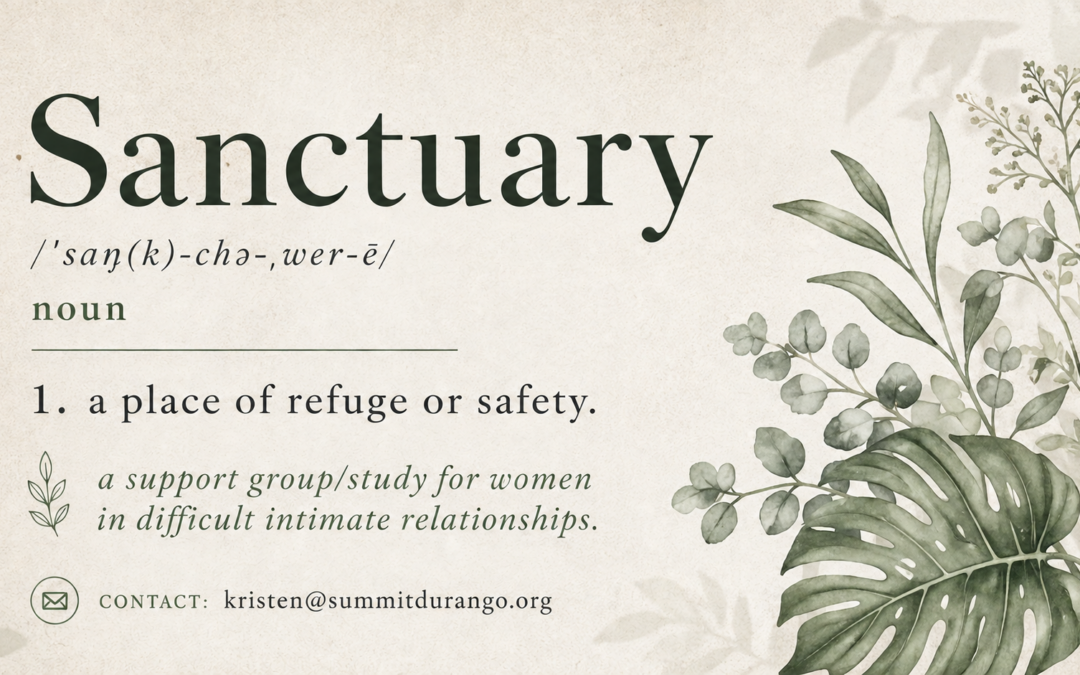 We understand that navigating difficult intimate relationships can be challenging and isolating. That’s why we’re offering a safe space for women to come together and find support. Join our Sanctuary group, a curriculum-based support group where you’ll be surrounded by others who understand your journey and are ready to walk alongside you. Through shared experiences, encouragement, and guidance through our study guide and workbook, our aim is to help you find peace and strength.