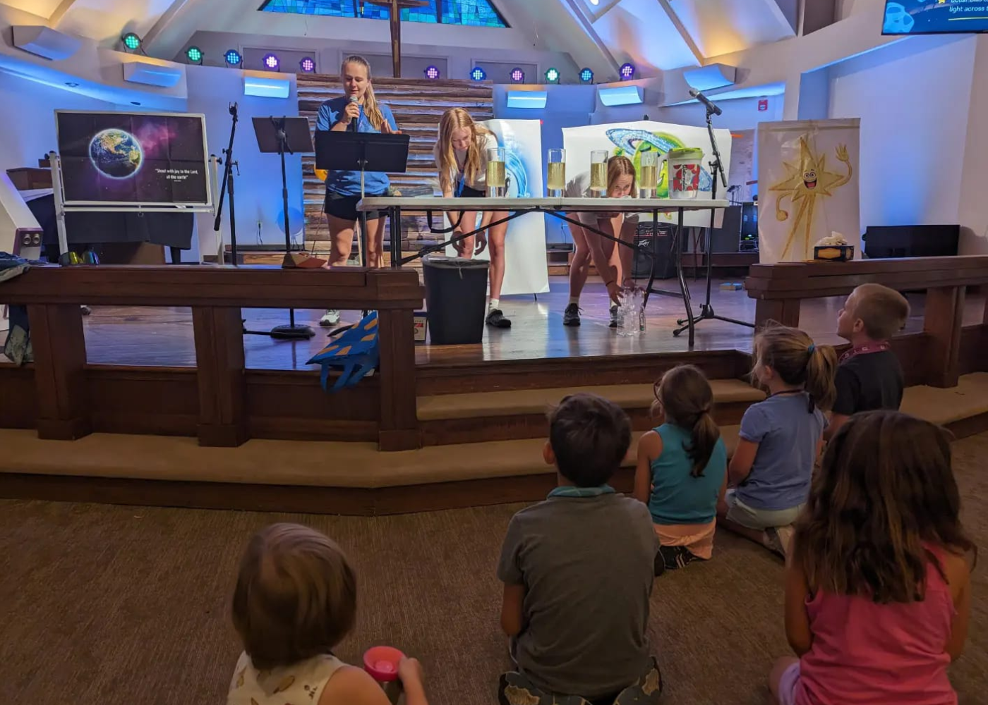 Children worship together, learn who God is, and understand salvation through Jesus Christ by participating in art activities, games, and lesson discussion – all in a fun and inviting way!